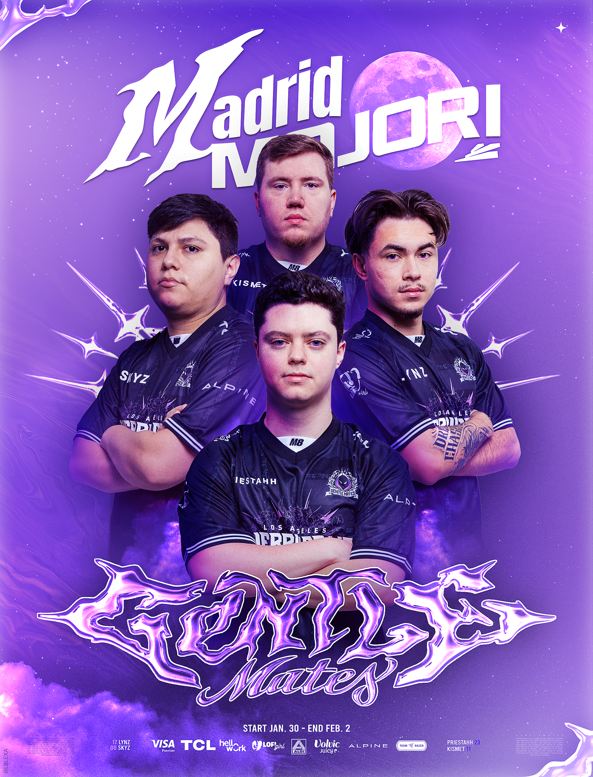 Ces visuels Gentlemates ont été réalisés en tant que "fan content" lors d'événements majeurs, mais aussi pour les réseaux personnels des joueurs, notamment d'Enkeo.
